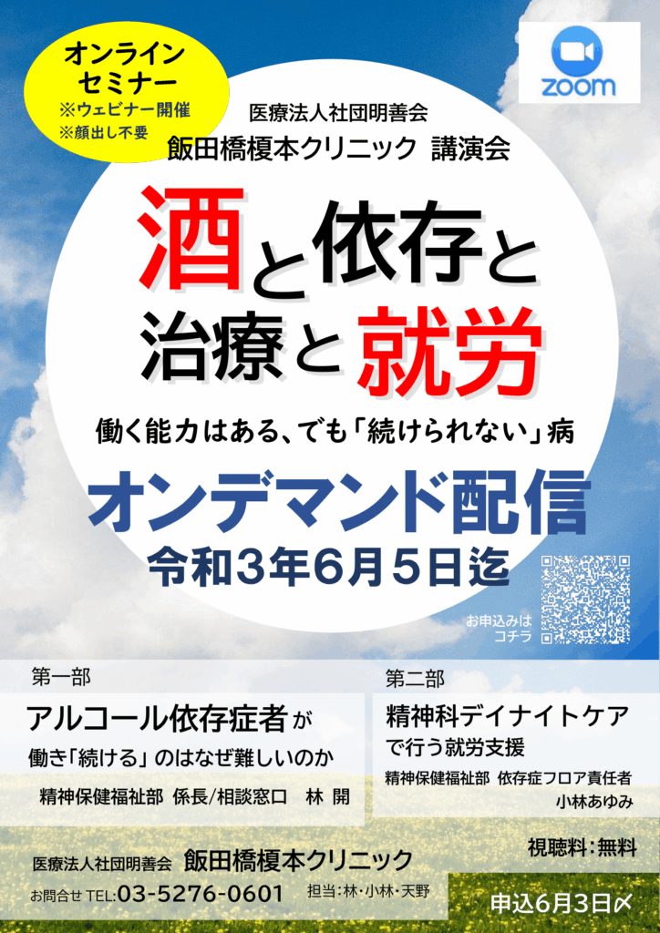 【オンデマンド配信5/21~6/5】飯田橋zoom講演会「酒と依存と 治療と就労」