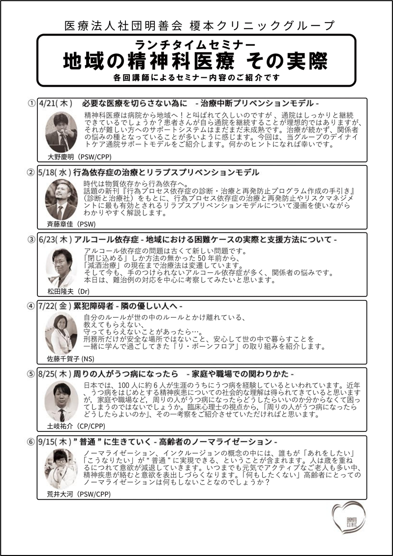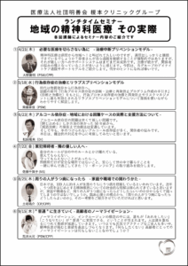 【シリーズ全6回】Zoomランチタイムセミナ-2022上半期 「地域の精神科医療 その実際」