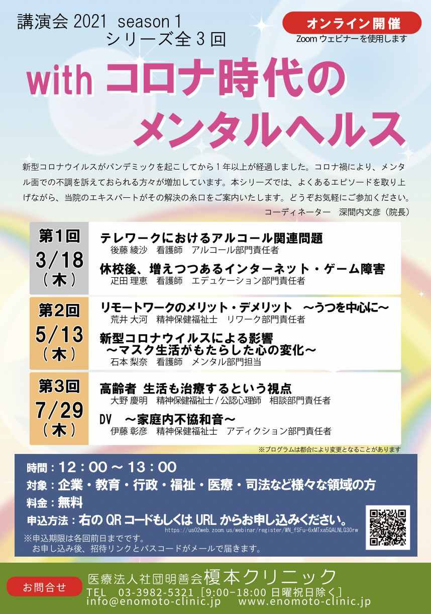 【2021年5月13日】榎本クリニック Zoom講演会「リモートワークうつ」・「マスクと不安」
