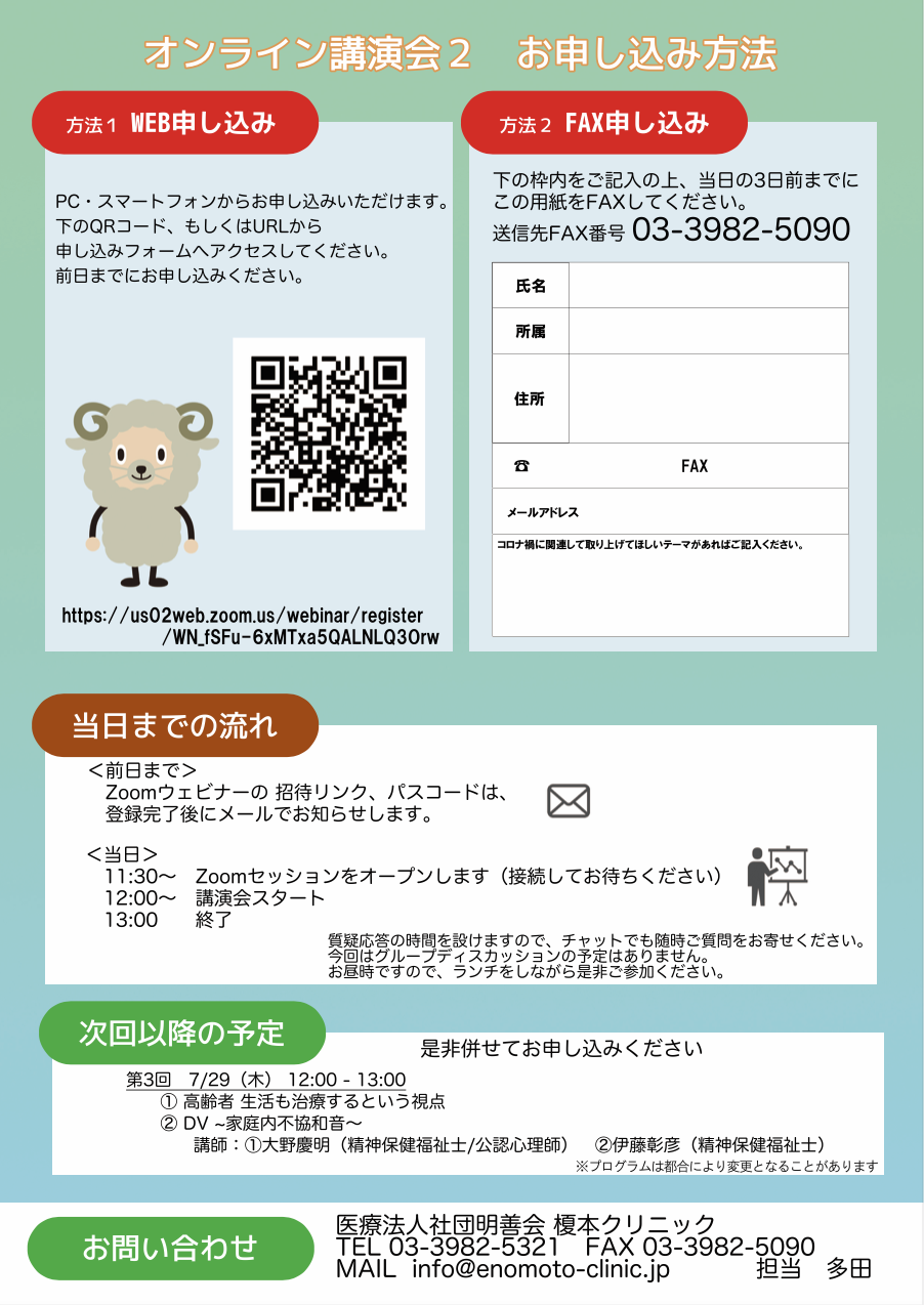 榎本クリニック Zoom講演会 シリーズ第2回