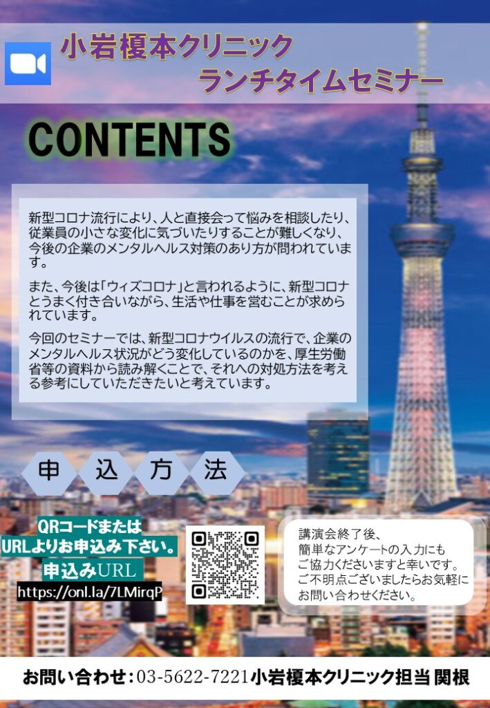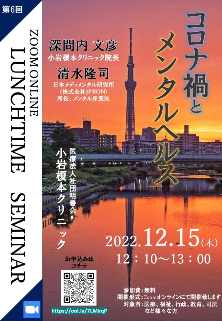 【zoomランチタイムセミナー】2022.12.15 小岩「コロナ禍とメンタルヘルス」
