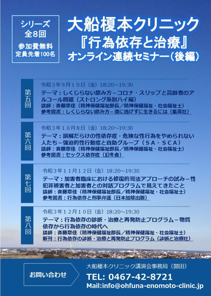 シリーズ全8回 大船榎本クリニック「行為依存と治療」オンライン連続セミナー(後編)